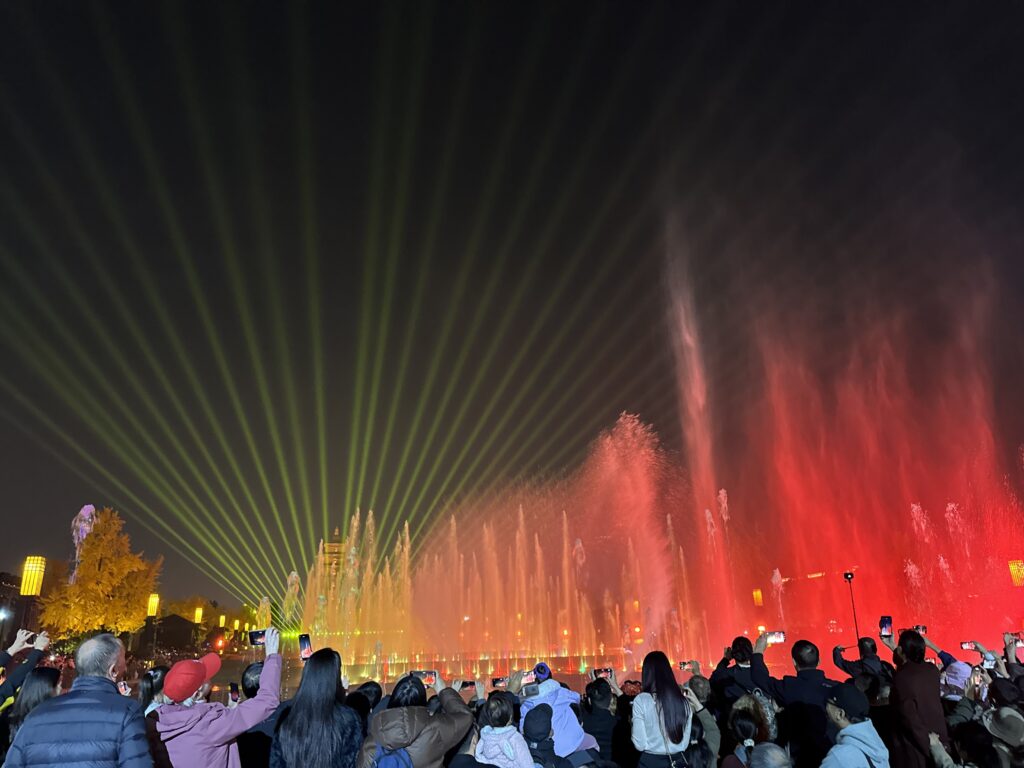 大雁塔の近くは不夜城があり、ライトアップは19時00分から19時10分までです。